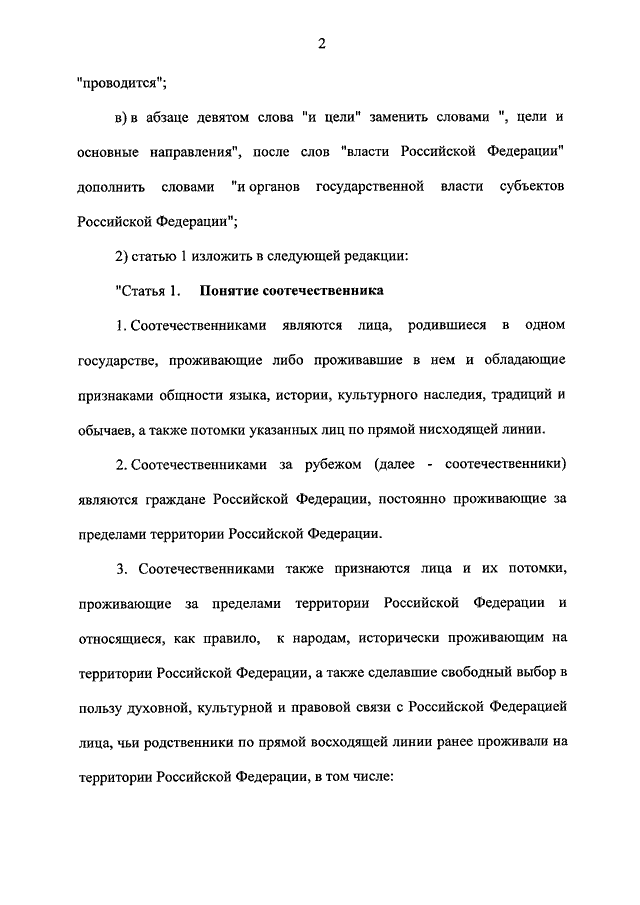 "О ВНЕСЕНИИ ИЗМЕНЕНИЙ В ФЕДЕРАЛЬНЫЙ ЗАКОН "О ГОСУДАРСТВЕННОЙ ПОЛИТИКЕ РОССИЙСКОЙ ФЕДЕРАЦИИ В ОТНОШЕНИИ СООТЕЧЕСТВЕННИКОВ ЗА РУБЕЖОМ"