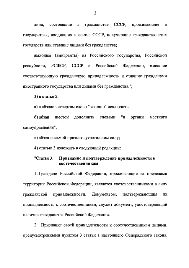 "О ВНЕСЕНИИ ИЗМЕНЕНИЙ В ФЕДЕРАЛЬНЫЙ ЗАКОН "О ГОСУДАРСТВЕННОЙ ПОЛИТИКЕ РОССИЙСКОЙ ФЕДЕРАЦИИ В ОТНОШЕНИИ СООТЕЧЕСТВЕННИКОВ ЗА РУБЕЖОМ"