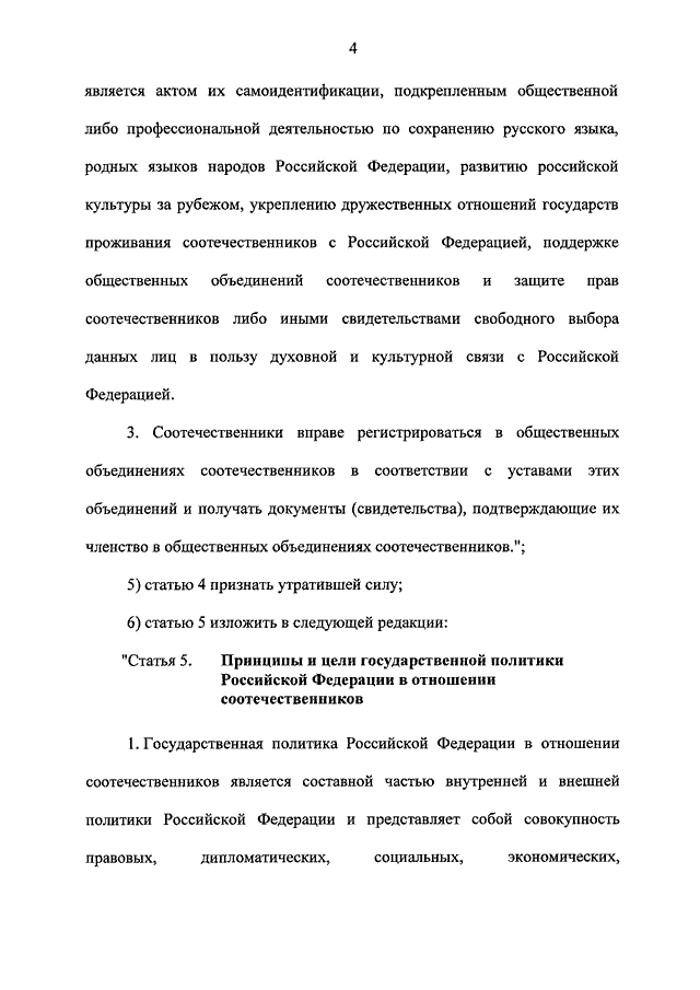 "О ВНЕСЕНИИ ИЗМЕНЕНИЙ В ФЕДЕРАЛЬНЫЙ ЗАКОН "О ГОСУДАРСТВЕННОЙ ПОЛИТИКЕ РОССИЙСКОЙ ФЕДЕРАЦИИ В ОТНОШЕНИИ СООТЕЧЕСТВЕННИКОВ ЗА РУБЕЖОМ"