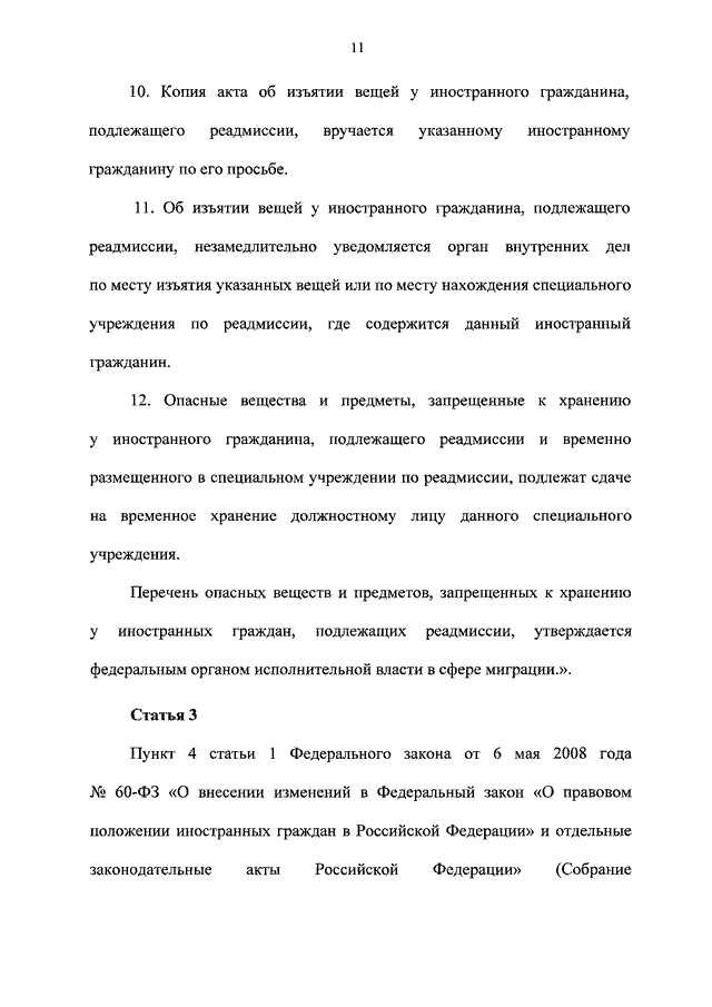 "О ВНЕСЕНИИ ИЗМЕНЕНИЙ В ОТДЕЛЬНЫЕ ЗАКОНОДАТЕЛЬНЫЕ АКТЫ РОССИЙСКОЙ ФЕДЕРАЦИИ В СВЯЗИ С РЕАЛИЗАЦИЕЙ МЕЖДУНАРОДНЫХ ДОГОВОРОВ РОССИЙСКОЙ ФЕДЕРАЦИИ О РЕАДМИССИИ"