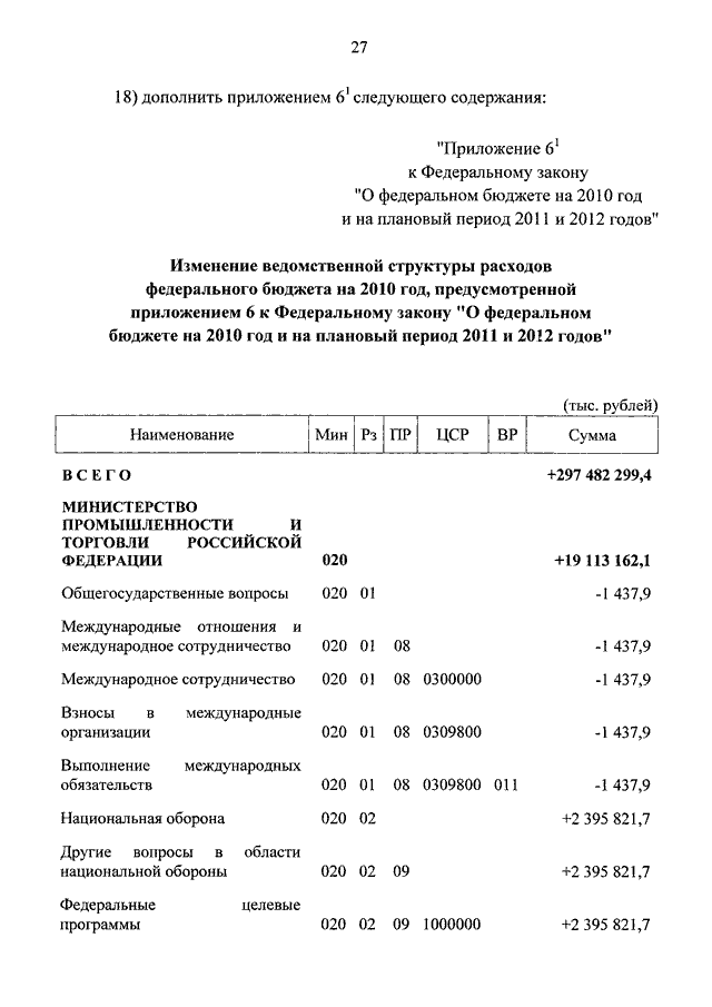 "О ВНЕСЕНИИ ИЗМЕНЕНИЙ В ФЕДЕРАЛЬНЫЙ ЗАКОН "О ФЕДЕРАЛЬНОМ БЮДЖЕТЕ НА 2010 ГОД И НА ПЛАНОВЫЙ ПЕРИОД 2011 И 2012 ГОДОВ"