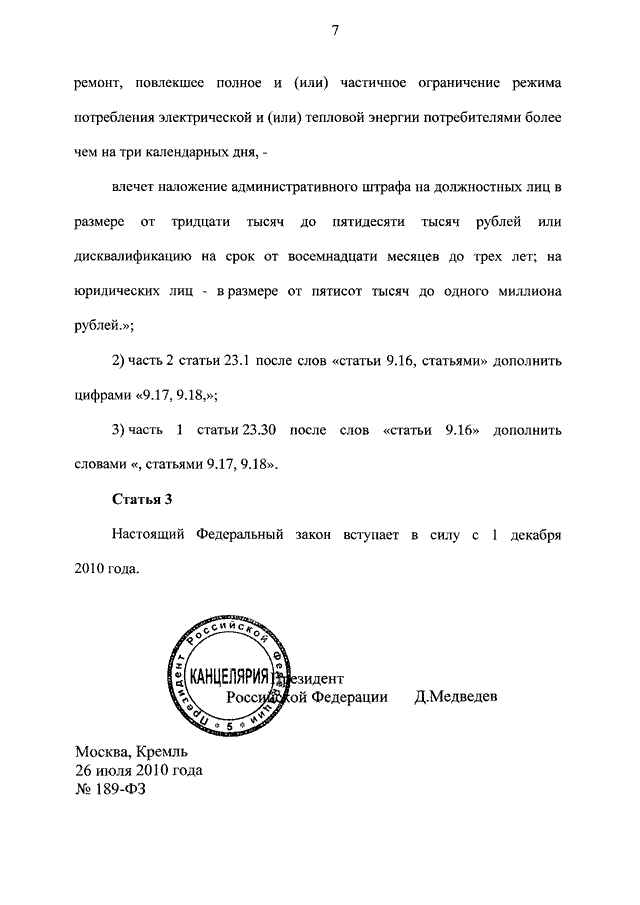 ФЕДЕРАЛЬНЫЙ ЗАКОН от 26.07.2010 N 189-ФЗ