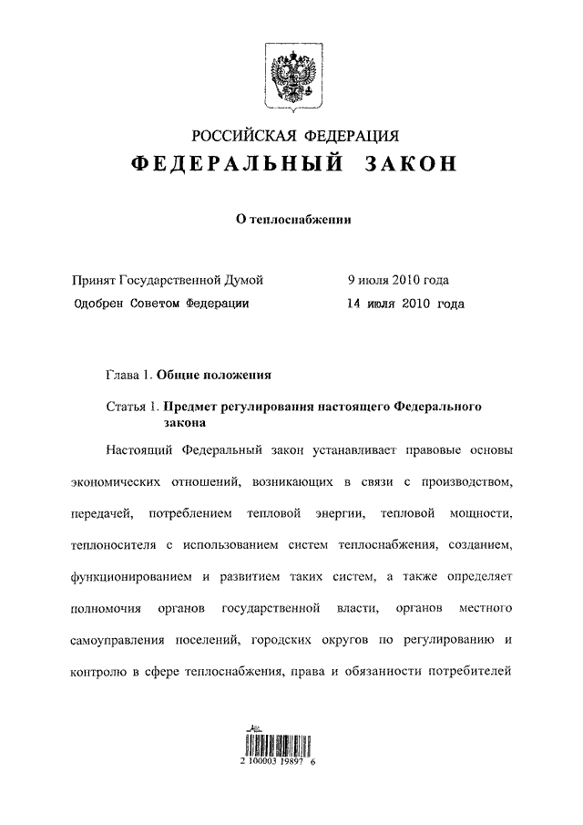 ФЕДЕРАЛЬНЫЙ ЗАКОН от 27.07.2010 N 190-ФЗ