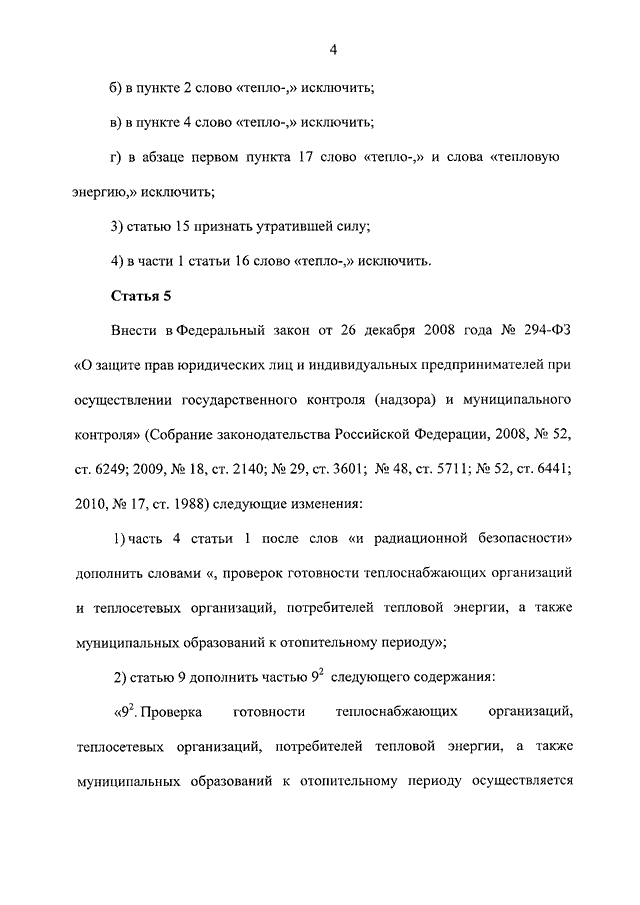 "О ВНЕСЕНИИ ИЗМЕНЕНИЙ В НЕКОТОРЫЕ ЗАКОНОДАТЕЛЬНЫЕ АКТЫ РОССИЙСКОЙ ФЕДЕРАЦИИ В СВЯЗИ С ПРИНЯТИЕМ ФЕДЕРАЛЬНОГО ЗАКОНА "О ТЕПЛОСНАБЖЕНИИ"