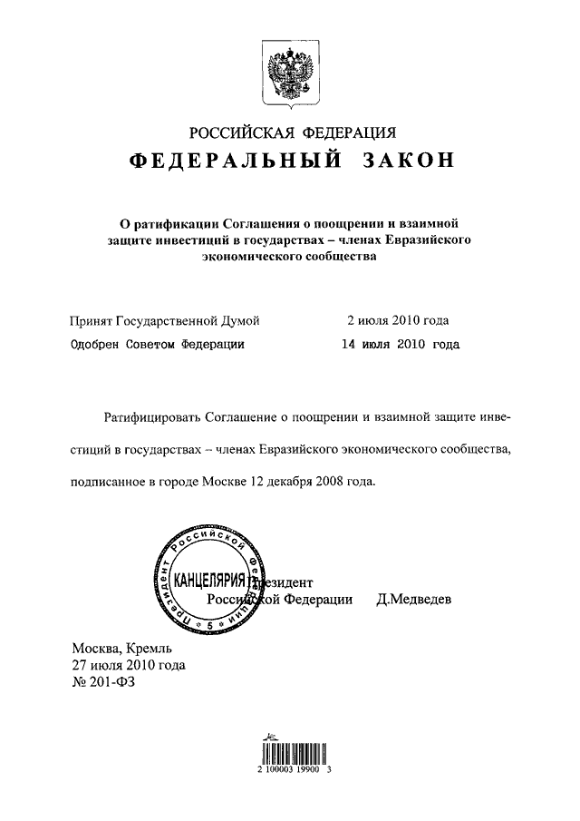 ФЕДЕРАЛЬНЫЙ ЗАКОН от 27.07.2010 N 201-ФЗ