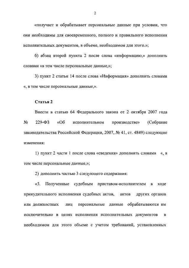"О ВНЕСЕНИИ ИЗМЕНЕНИЙ В ФЕДЕРАЛЬНЫЙ ЗАКОН "О СУДЕБНЫХ ПРИСТАВАХ" И СТАТЬЮ 64 ФЕДЕРАЛЬНОГО ЗАКОНА "ОБ ИСПОЛНИТЕЛЬНОМ ПРОИЗВОДСТВЕ" ПО ВОПРОСАМ ПРЕДОСТАВЛЕНИЯ СУДЕБНЫМ ПРИСТАВАМ ПЕРСОНАЛЬНЫХ ДАННЫХ"