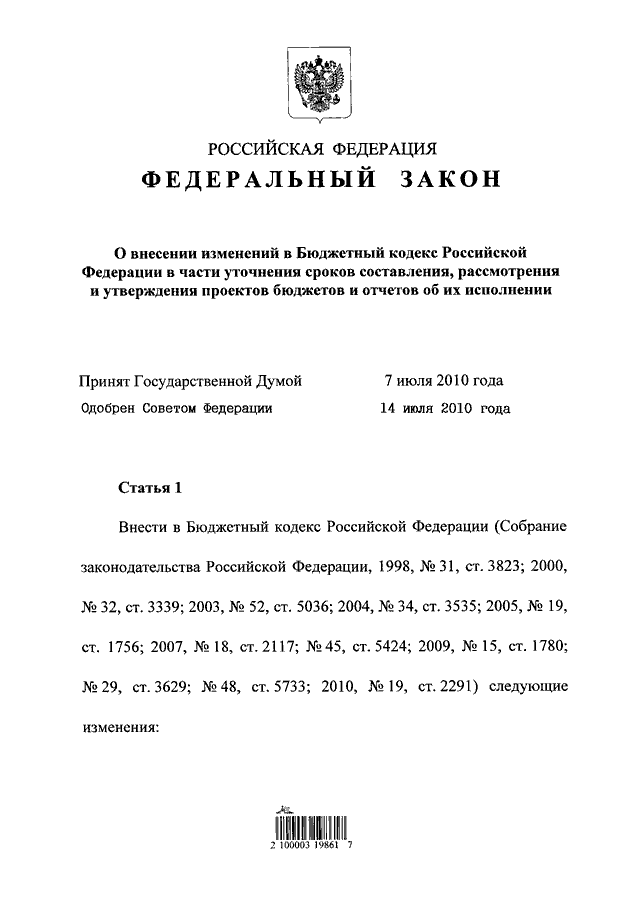 "О ВНЕСЕНИИ ИЗМЕНЕНИЙ В БЮДЖЕТНЫЙ КОДЕКС РОССИЙСКОЙ ФЕДЕРАЦИИ В ЧАСТИ УТОЧНЕНИЯ СРОКОВ СОСТАВЛЕНИЯ, РАССМОТРЕНИЯ И УТВЕРЖДЕНИЯ ПРОЕКТОВ БЮДЖЕТОВ И ОТЧЕТОВ ОБ ИХ ИСПОЛНЕНИИ"