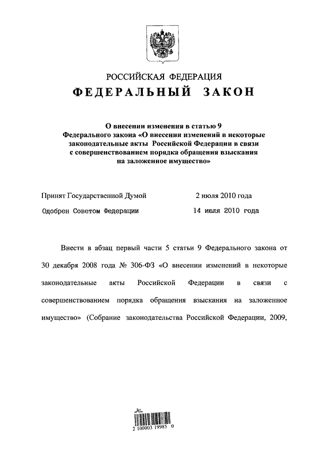 ФЕДЕРАЛЬНЫЙ ЗАКОН от 27.07.2010 N 218-ФЗ