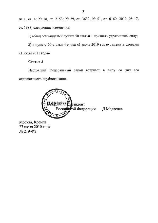 ФЕДЕРАЛЬНЫЙ ЗАКОН от 27.07.2010 N 219-ФЗ