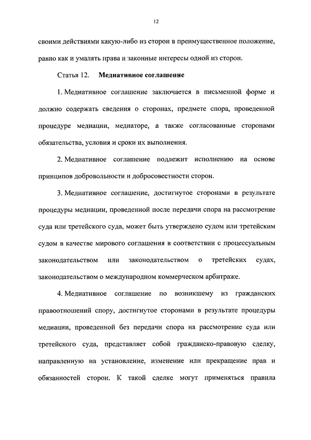 "ОБ АЛЬТЕРНАТИВНОЙ ПРОЦЕДУРЕ УРЕГУЛИРОВАНИЯ СПОРОВ С УЧАСТИЕМ ПОСРЕДНИКА (ПРОЦЕДУРЕ МЕДИАЦИИ)"