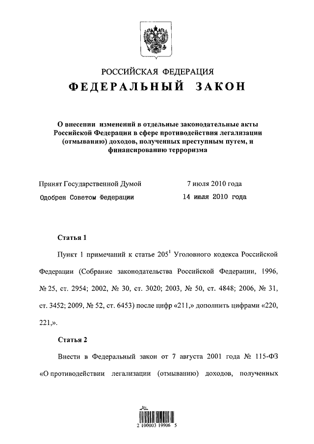 ФЕДЕРАЛЬНЫЙ ЗАКОН от 27.07.2010 N 197-ФЗ