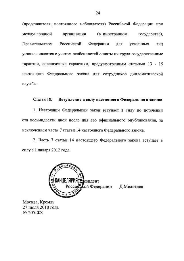 ФЕДЕРАЛЬНЫЙ ЗАКОН от 27.07.2010 N 205-ФЗ