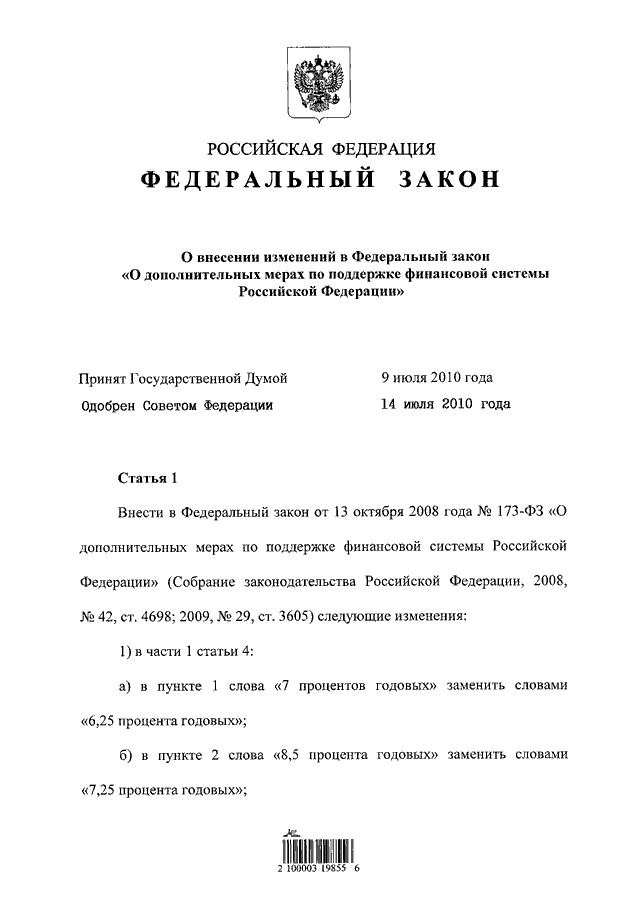 "О ВНЕСЕНИИ ИЗМЕНЕНИЙ В ФЕДЕРАЛЬНЫЙ ЗАКОН "О ДОПОЛНИТЕЛЬНЫХ МЕРАХ ПО ПОДДЕРЖКЕ ФИНАНСОВОЙ СИСТЕМЫ РОССИЙСКОЙ ФЕДЕРАЦИИ"