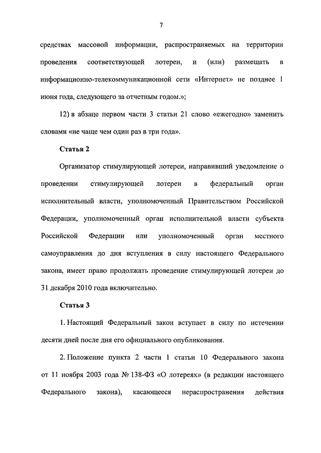 "О ВНЕСЕНИИ ИЗМЕНЕНИЙ В ФЕДЕРАЛЬНЫЙ ЗАКОН "О ЛОТЕРЕЯХ"