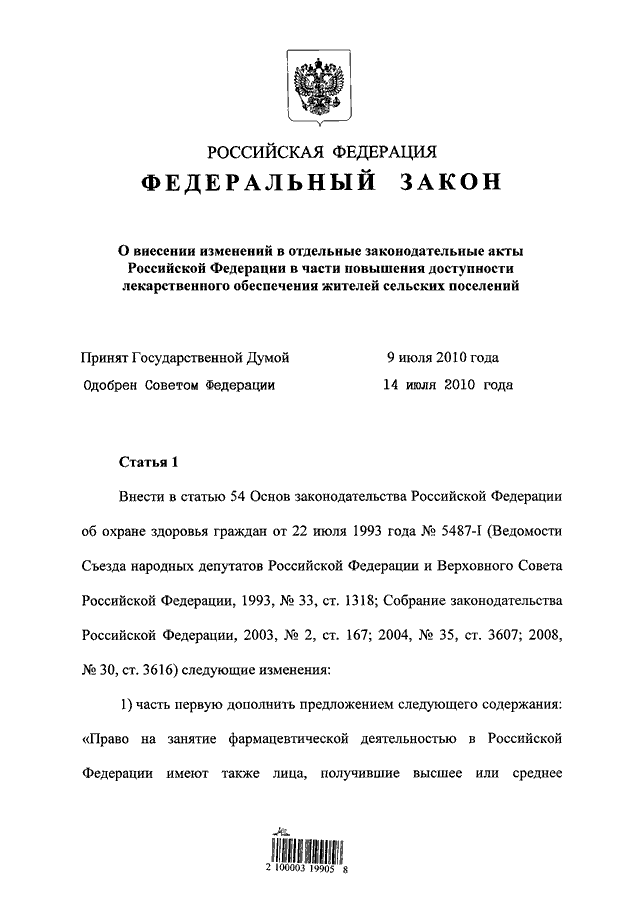 "О ВНЕСЕНИИ ИЗМЕНЕНИЙ В ОТДЕЛЬНЫЕ ЗАКОНОДАТЕЛЬНЫЕ АКТЫ РОССИЙСКОЙ ФЕДЕРАЦИИ В ЧАСТИ ПОВЫШЕНИЯ ДОСТУПНОСТИ ЛЕКАРСТВЕННОГО ОБЕСПЕЧЕНИЯ ЖИТЕЛЕЙ СЕЛЬСКИХ ПОСЕЛЕНИЙ"