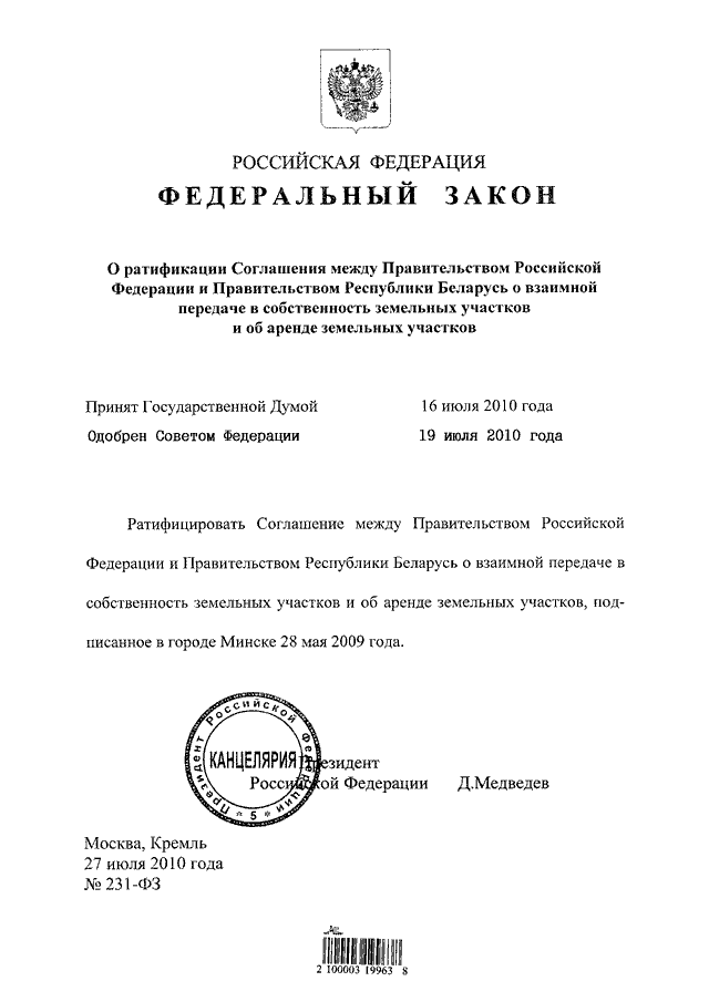 ФЕДЕРАЛЬНЫЙ ЗАКОН от 27.07.2010 N 231-ФЗ