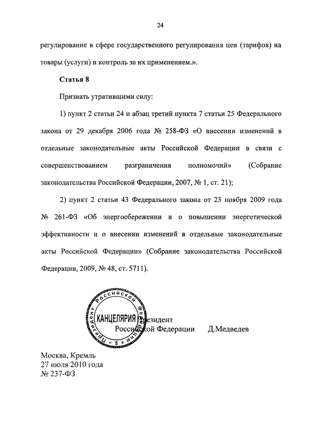 ФЕДЕРАЛЬНЫЙ ЗАКОН от 27.07.2010 N 237-ФЗ