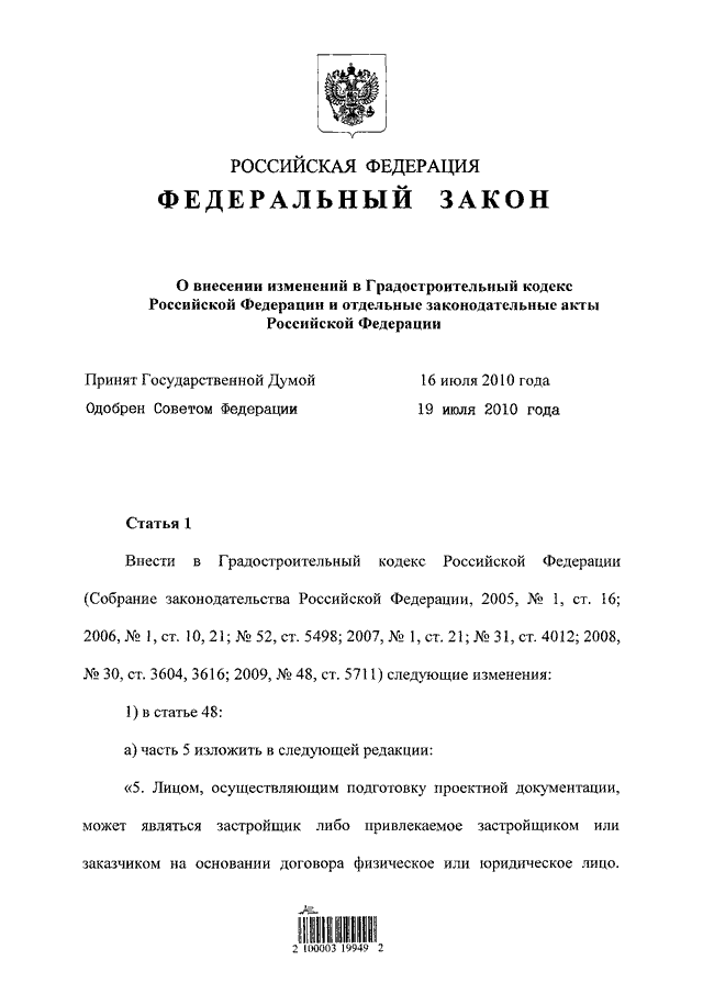 ФЕДЕРАЛЬНЫЙ ЗАКОН от 27.07.2010 N 240-ФЗ