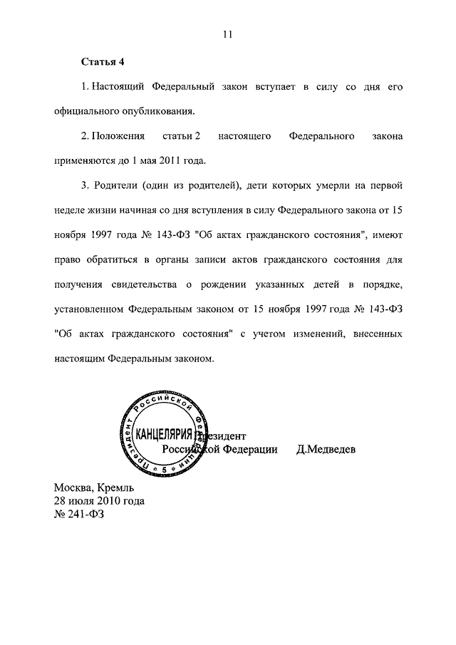 ФЕДЕРАЛЬНЫЙ ЗАКОН от 28.07.2010 N 241-ФЗ