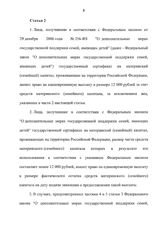 "О ВНЕСЕНИИ ИЗМЕНЕНИЙ В ОТДЕЛЬНЫЕ ЗАКОНОДАТЕЛЬНЫЕ АКТЫ РОССИЙСКОЙ ФЕДЕРАЦИИ И О ПОРЯДКЕ ПРЕДОСТАВЛЕНИЯ ЕДИНОВРЕМЕННОЙ ВЫПЛАТЫ ЗА СЧЕТ СРЕДСТВ МАТЕРИНСКОГО (СЕМЕЙНОГО) КАПИТАЛА"