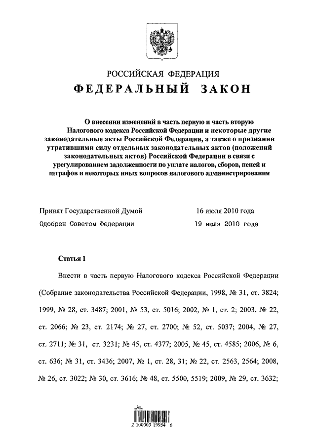 ФЕДЕРАЛЬНЫЙ ЗАКОН от 27.07.2010 N 229-ФЗ