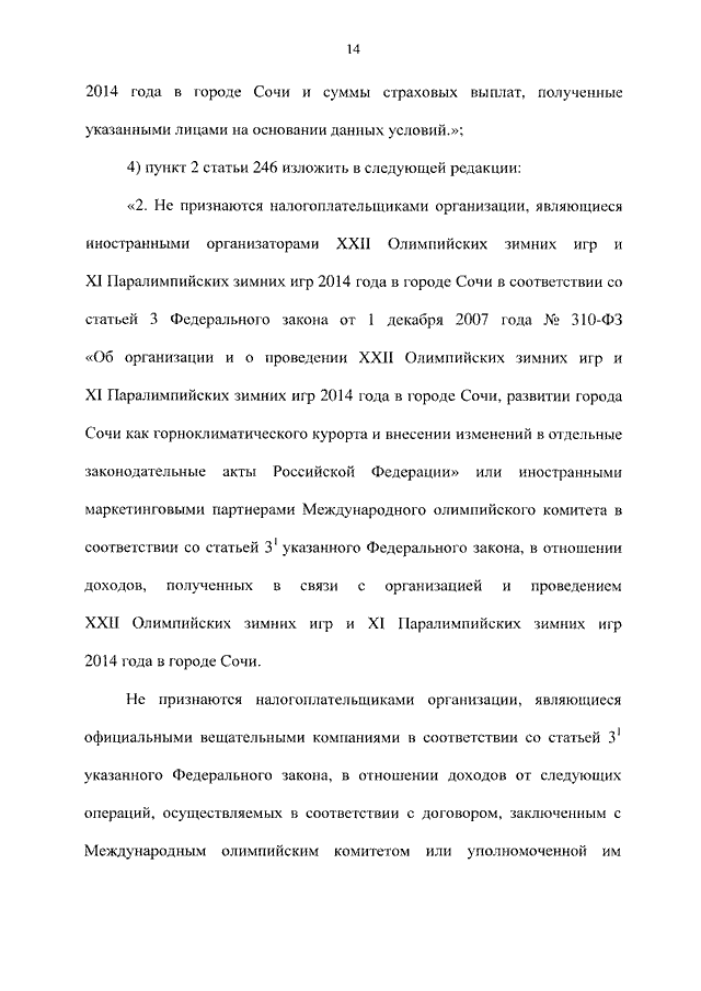 "О ВНЕСЕНИИ ИЗМЕНЕНИЙ В ОТДЕЛЬНЫЕ ЗАКОНОДАТЕЛЬНЫЕ АКТЫ РОССИЙСКОЙ ФЕДЕРАЦИИ В СВЯЗИ С ОРГАНИЗАЦИЕЙ И ПРОВЕДЕНИЕМ XXII ОЛИМПИЙСКИХ ЗИМНИХ ИГР И XI ПАРАЛИМПИЙСКИХ ЗИМНИХ ИГР 2014 ГОДА В ГОРОДЕ СОЧИ И РАЗВИТИЕМ ГОРОДА СОЧИ КАК ГОРНОКЛИМАТИЧЕСКОГО КУРОРТА"
