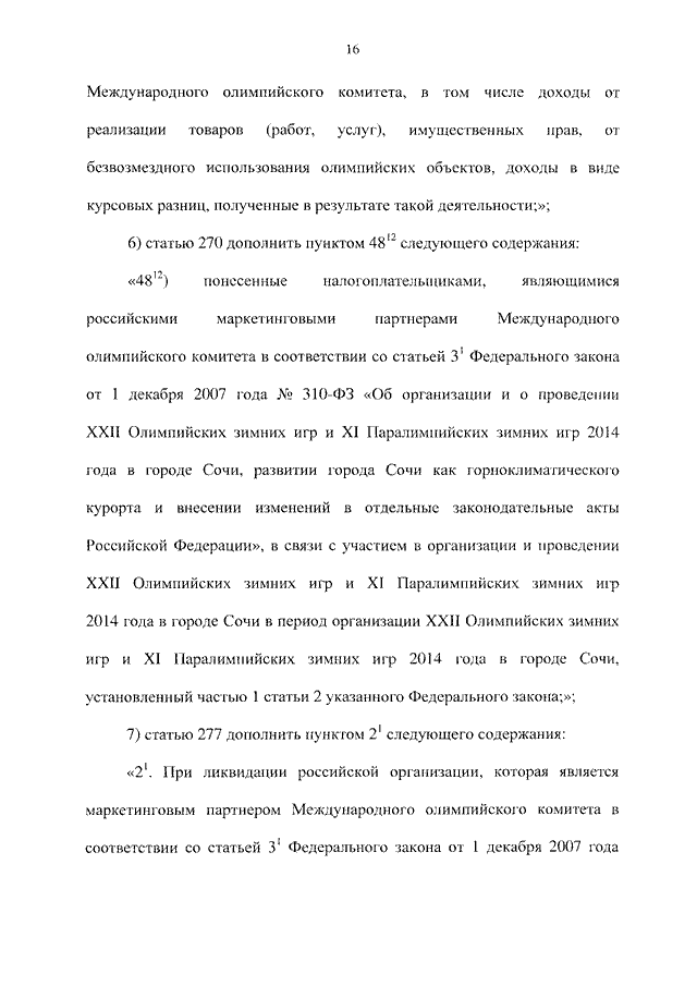 "О ВНЕСЕНИИ ИЗМЕНЕНИЙ В ОТДЕЛЬНЫЕ ЗАКОНОДАТЕЛЬНЫЕ АКТЫ РОССИЙСКОЙ ФЕДЕРАЦИИ В СВЯЗИ С ОРГАНИЗАЦИЕЙ И ПРОВЕДЕНИЕМ XXII ОЛИМПИЙСКИХ ЗИМНИХ ИГР И XI ПАРАЛИМПИЙСКИХ ЗИМНИХ ИГР 2014 ГОДА В ГОРОДЕ СОЧИ И РАЗВИТИЕМ ГОРОДА СОЧИ КАК ГОРНОКЛИМАТИЧЕСКОГО КУРОРТА"