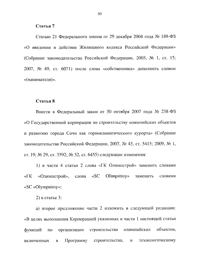 "О ВНЕСЕНИИ ИЗМЕНЕНИЙ В ОТДЕЛЬНЫЕ ЗАКОНОДАТЕЛЬНЫЕ АКТЫ РОССИЙСКОЙ ФЕДЕРАЦИИ В СВЯЗИ С ОРГАНИЗАЦИЕЙ И ПРОВЕДЕНИЕМ XXII ОЛИМПИЙСКИХ ЗИМНИХ ИГР И XI ПАРАЛИМПИЙСКИХ ЗИМНИХ ИГР 2014 ГОДА В ГОРОДЕ СОЧИ И РАЗВИТИЕМ ГОРОДА СОЧИ КАК ГОРНОКЛИМАТИЧЕСКОГО КУРОРТА"