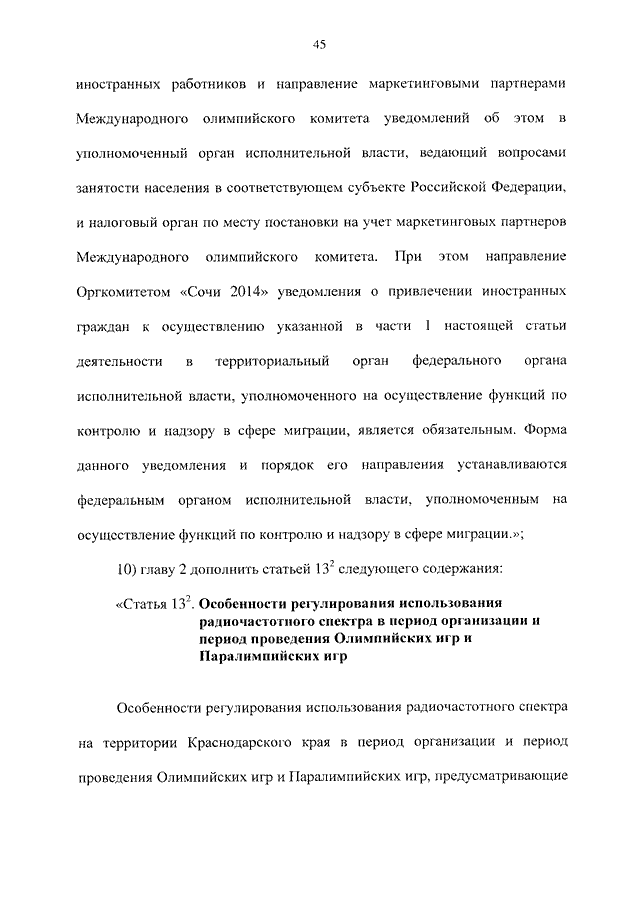 "О ВНЕСЕНИИ ИЗМЕНЕНИЙ В ОТДЕЛЬНЫЕ ЗАКОНОДАТЕЛЬНЫЕ АКТЫ РОССИЙСКОЙ ФЕДЕРАЦИИ В СВЯЗИ С ОРГАНИЗАЦИЕЙ И ПРОВЕДЕНИЕМ XXII ОЛИМПИЙСКИХ ЗИМНИХ ИГР И XI ПАРАЛИМПИЙСКИХ ЗИМНИХ ИГР 2014 ГОДА В ГОРОДЕ СОЧИ И РАЗВИТИЕМ ГОРОДА СОЧИ КАК ГОРНОКЛИМАТИЧЕСКОГО КУРОРТА"