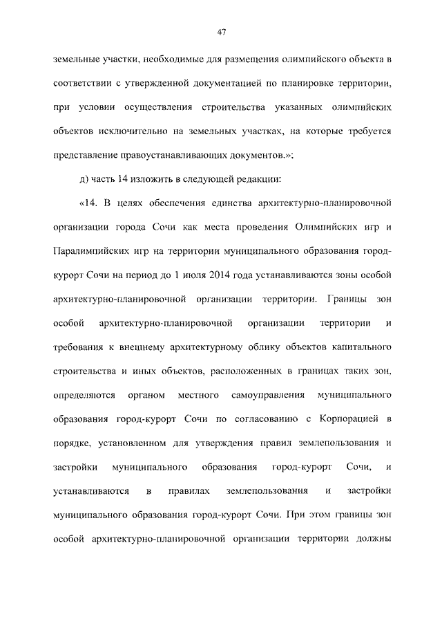"О ВНЕСЕНИИ ИЗМЕНЕНИЙ В ОТДЕЛЬНЫЕ ЗАКОНОДАТЕЛЬНЫЕ АКТЫ РОССИЙСКОЙ ФЕДЕРАЦИИ В СВЯЗИ С ОРГАНИЗАЦИЕЙ И ПРОВЕДЕНИЕМ XXII ОЛИМПИЙСКИХ ЗИМНИХ ИГР И XI ПАРАЛИМПИЙСКИХ ЗИМНИХ ИГР 2014 ГОДА В ГОРОДЕ СОЧИ И РАЗВИТИЕМ ГОРОДА СОЧИ КАК ГОРНОКЛИМАТИЧЕСКОГО КУРОРТА"