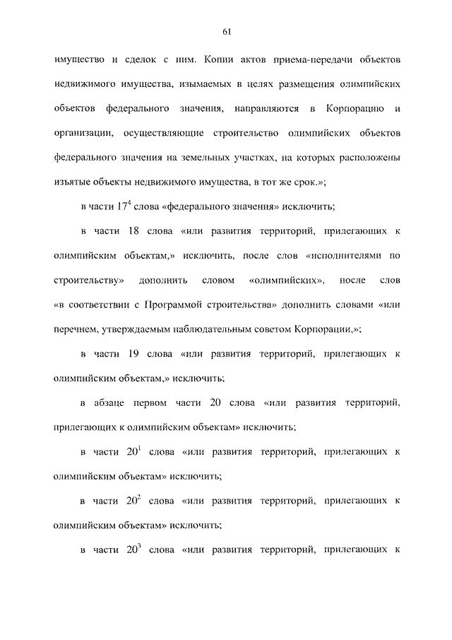 "О ВНЕСЕНИИ ИЗМЕНЕНИЙ В ОТДЕЛЬНЫЕ ЗАКОНОДАТЕЛЬНЫЕ АКТЫ РОССИЙСКОЙ ФЕДЕРАЦИИ В СВЯЗИ С ОРГАНИЗАЦИЕЙ И ПРОВЕДЕНИЕМ XXII ОЛИМПИЙСКИХ ЗИМНИХ ИГР И XI ПАРАЛИМПИЙСКИХ ЗИМНИХ ИГР 2014 ГОДА В ГОРОДЕ СОЧИ И РАЗВИТИЕМ ГОРОДА СОЧИ КАК ГОРНОКЛИМАТИЧЕСКОГО КУРОРТА"
