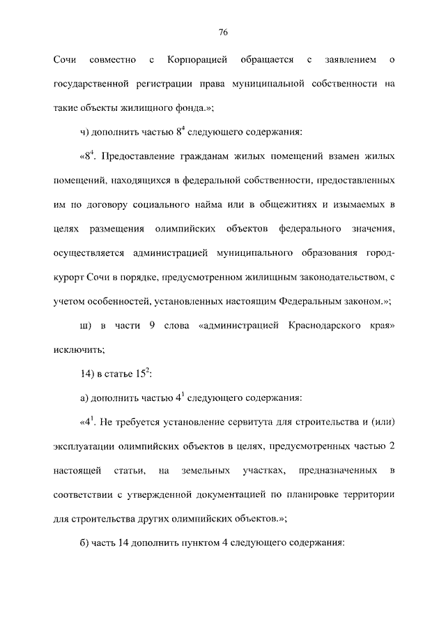 "О ВНЕСЕНИИ ИЗМЕНЕНИЙ В ОТДЕЛЬНЫЕ ЗАКОНОДАТЕЛЬНЫЕ АКТЫ РОССИЙСКОЙ ФЕДЕРАЦИИ В СВЯЗИ С ОРГАНИЗАЦИЕЙ И ПРОВЕДЕНИЕМ XXII ОЛИМПИЙСКИХ ЗИМНИХ ИГР И XI ПАРАЛИМПИЙСКИХ ЗИМНИХ ИГР 2014 ГОДА В ГОРОДЕ СОЧИ И РАЗВИТИЕМ ГОРОДА СОЧИ КАК ГОРНОКЛИМАТИЧЕСКОГО КУРОРТА"