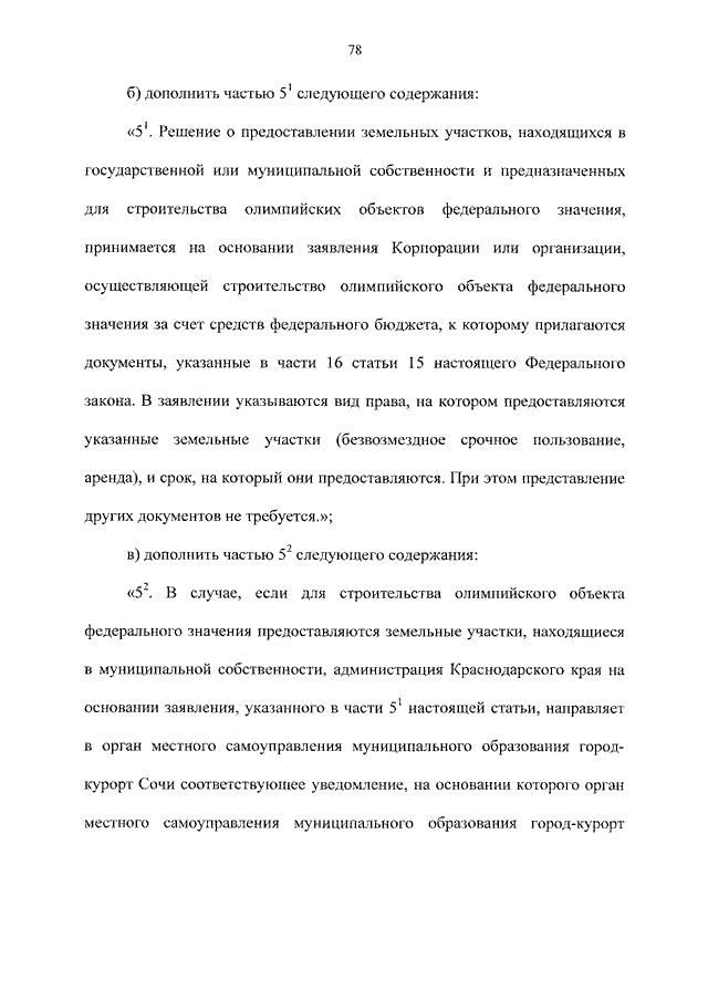 "О ВНЕСЕНИИ ИЗМЕНЕНИЙ В ОТДЕЛЬНЫЕ ЗАКОНОДАТЕЛЬНЫЕ АКТЫ РОССИЙСКОЙ ФЕДЕРАЦИИ В СВЯЗИ С ОРГАНИЗАЦИЕЙ И ПРОВЕДЕНИЕМ XXII ОЛИМПИЙСКИХ ЗИМНИХ ИГР И XI ПАРАЛИМПИЙСКИХ ЗИМНИХ ИГР 2014 ГОДА В ГОРОДЕ СОЧИ И РАЗВИТИЕМ ГОРОДА СОЧИ КАК ГОРНОКЛИМАТИЧЕСКОГО КУРОРТА"