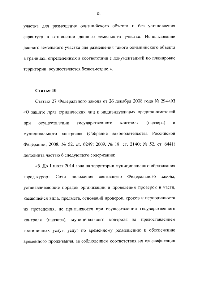 "О ВНЕСЕНИИ ИЗМЕНЕНИЙ В ОТДЕЛЬНЫЕ ЗАКОНОДАТЕЛЬНЫЕ АКТЫ РОССИЙСКОЙ ФЕДЕРАЦИИ В СВЯЗИ С ОРГАНИЗАЦИЕЙ И ПРОВЕДЕНИЕМ XXII ОЛИМПИЙСКИХ ЗИМНИХ ИГР И XI ПАРАЛИМПИЙСКИХ ЗИМНИХ ИГР 2014 ГОДА В ГОРОДЕ СОЧИ И РАЗВИТИЕМ ГОРОДА СОЧИ КАК ГОРНОКЛИМАТИЧЕСКОГО КУРОРТА"