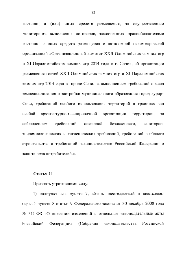 "О ВНЕСЕНИИ ИЗМЕНЕНИЙ В ОТДЕЛЬНЫЕ ЗАКОНОДАТЕЛЬНЫЕ АКТЫ РОССИЙСКОЙ ФЕДЕРАЦИИ В СВЯЗИ С ОРГАНИЗАЦИЕЙ И ПРОВЕДЕНИЕМ XXII ОЛИМПИЙСКИХ ЗИМНИХ ИГР И XI ПАРАЛИМПИЙСКИХ ЗИМНИХ ИГР 2014 ГОДА В ГОРОДЕ СОЧИ И РАЗВИТИЕМ ГОРОДА СОЧИ КАК ГОРНОКЛИМАТИЧЕСКОГО КУРОРТА"