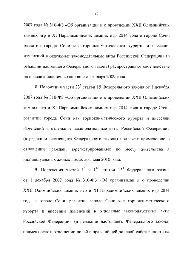 "О ВНЕСЕНИИ ИЗМЕНЕНИЙ В ОТДЕЛЬНЫЕ ЗАКОНОДАТЕЛЬНЫЕ АКТЫ РОССИЙСКОЙ ФЕДЕРАЦИИ В СВЯЗИ С ОРГАНИЗАЦИЕЙ И ПРОВЕДЕНИЕМ XXII ОЛИМПИЙСКИХ ЗИМНИХ ИГР И XI ПАРАЛИМПИЙСКИХ ЗИМНИХ ИГР 2014 ГОДА В ГОРОДЕ СОЧИ И РАЗВИТИЕМ ГОРОДА СОЧИ КАК ГОРНОКЛИМАТИЧЕСКОГО КУРОРТА"