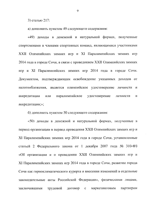 "О ВНЕСЕНИИ ИЗМЕНЕНИЙ В ОТДЕЛЬНЫЕ ЗАКОНОДАТЕЛЬНЫЕ АКТЫ РОССИЙСКОЙ ФЕДЕРАЦИИ В СВЯЗИ С ОРГАНИЗАЦИЕЙ И ПРОВЕДЕНИЕМ XXII ОЛИМПИЙСКИХ ЗИМНИХ ИГР И XI ПАРАЛИМПИЙСКИХ ЗИМНИХ ИГР 2014 ГОДА В ГОРОДЕ СОЧИ И РАЗВИТИЕМ ГОРОДА СОЧИ КАК ГОРНОКЛИМАТИЧЕСКОГО КУРОРТА"