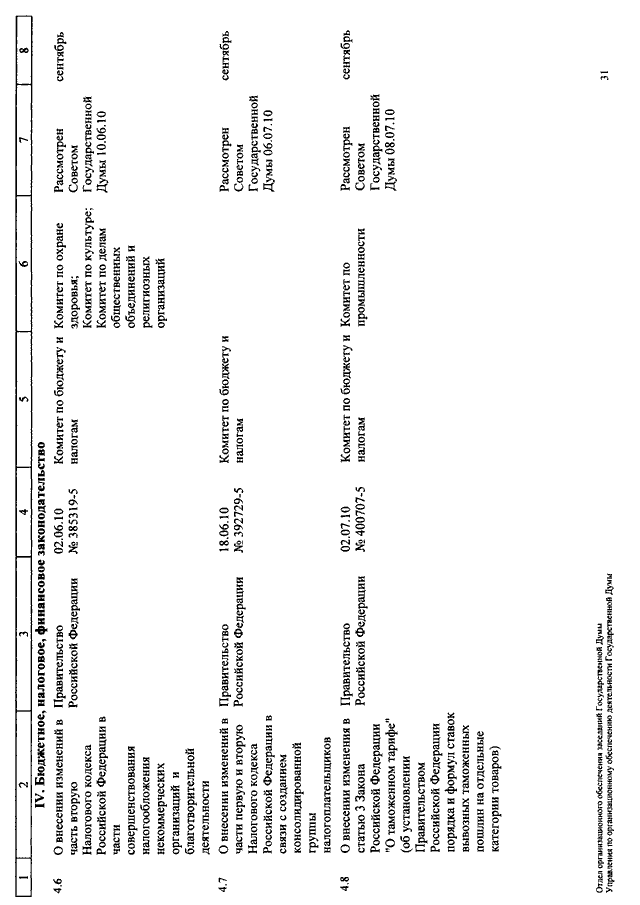 "О ПРИМЕРНОЙ ПРОГРАММЕ ЗАКОНОПРОЕКТНОЙ РАБОТЫ ГОСУДАРСТВЕННОЙ ДУМЫ ФЕДЕРАЛЬНОГО СОБРАНИЯ РОССИЙСКОЙ ФЕДЕРАЦИИ В ПЕРИОД ОСЕННЕЙ СЕССИИ 2010 ГОДА"
