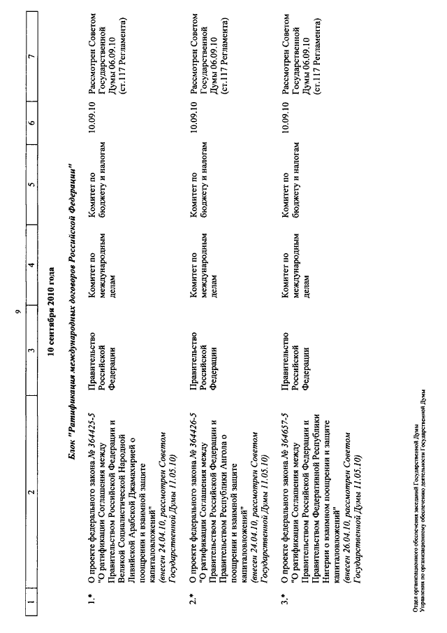 "О КАЛЕНДАРЕ РАССМОТРЕНИЯ ВОПРОСОВ ГОСУДАРСТВЕННОЙ ДУМОЙ С 7 ПО 24 СЕНТЯБРЯ 2010 ГОДА"