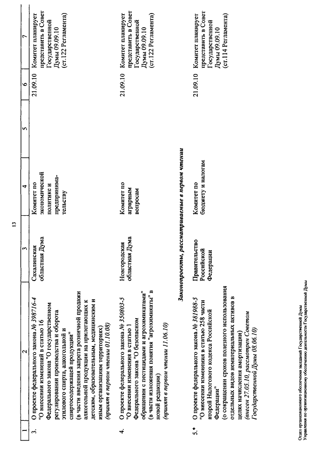 "О КАЛЕНДАРЕ РАССМОТРЕНИЯ ВОПРОСОВ ГОСУДАРСТВЕННОЙ ДУМОЙ С 7 ПО 24 СЕНТЯБРЯ 2010 ГОДА"