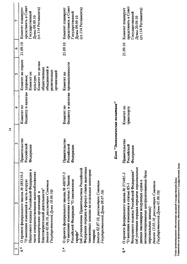 "О КАЛЕНДАРЕ РАССМОТРЕНИЯ ВОПРОСОВ ГОСУДАРСТВЕННОЙ ДУМОЙ С 7 ПО 24 СЕНТЯБРЯ 2010 ГОДА"