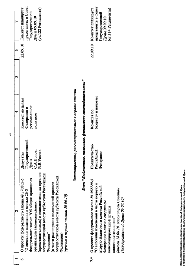 "О КАЛЕНДАРЕ РАССМОТРЕНИЯ ВОПРОСОВ ГОСУДАРСТВЕННОЙ ДУМОЙ С 7 ПО 24 СЕНТЯБРЯ 2010 ГОДА"