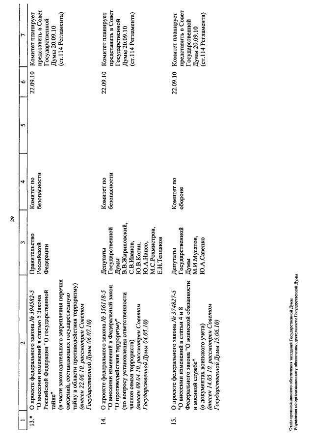 "О КАЛЕНДАРЕ РАССМОТРЕНИЯ ВОПРОСОВ ГОСУДАРСТВЕННОЙ ДУМОЙ С 7 ПО 24 СЕНТЯБРЯ 2010 ГОДА"