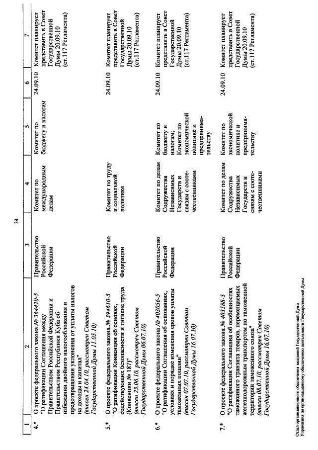 "О КАЛЕНДАРЕ РАССМОТРЕНИЯ ВОПРОСОВ ГОСУДАРСТВЕННОЙ ДУМОЙ С 7 ПО 24 СЕНТЯБРЯ 2010 ГОДА"