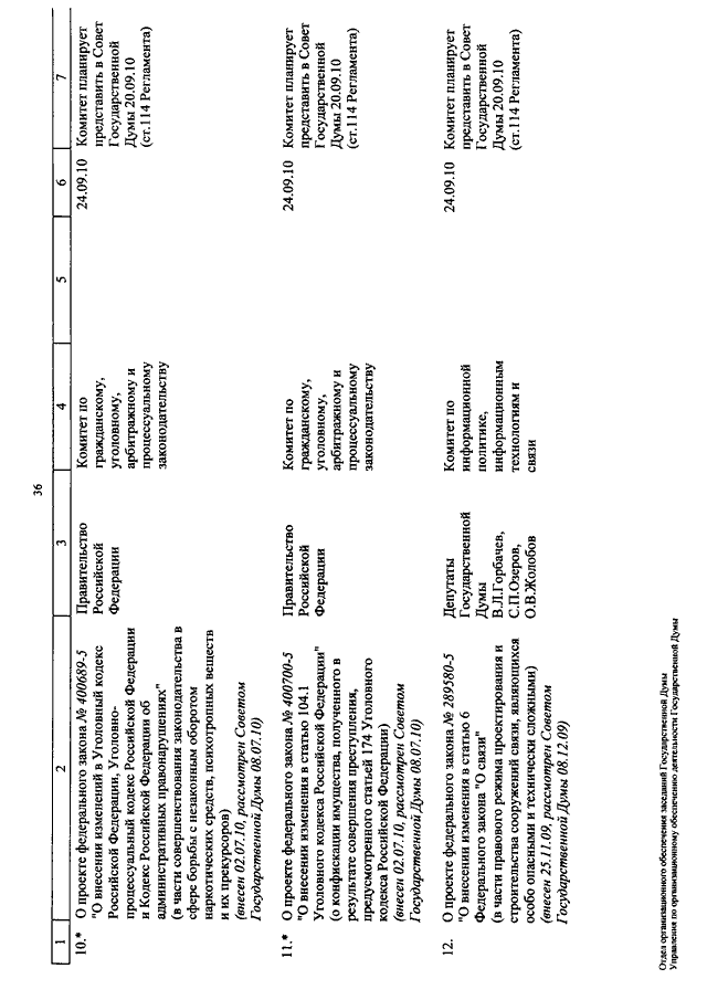 "О КАЛЕНДАРЕ РАССМОТРЕНИЯ ВОПРОСОВ ГОСУДАРСТВЕННОЙ ДУМОЙ С 7 ПО 24 СЕНТЯБРЯ 2010 ГОДА"