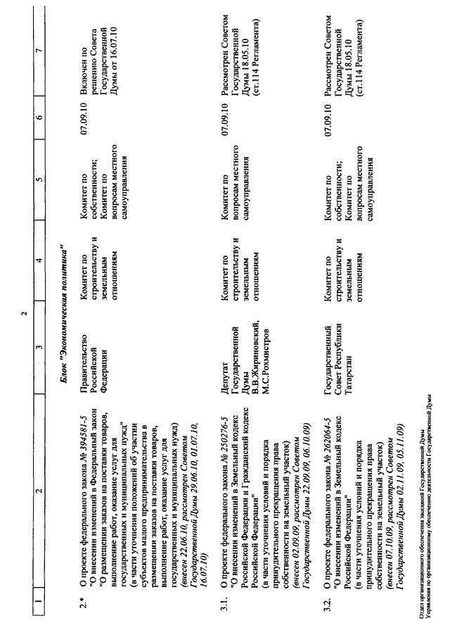 "О КАЛЕНДАРЕ РАССМОТРЕНИЯ ВОПРОСОВ ГОСУДАРСТВЕННОЙ ДУМОЙ С 7 ПО 24 СЕНТЯБРЯ 2010 ГОДА"