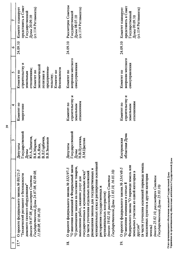 "О КАЛЕНДАРЕ РАССМОТРЕНИЯ ВОПРОСОВ ГОСУДАРСТВЕННОЙ ДУМОЙ С 7 ПО 24 СЕНТЯБРЯ 2010 ГОДА"