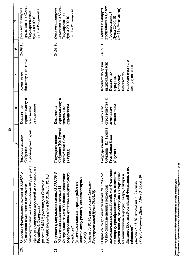 "О КАЛЕНДАРЕ РАССМОТРЕНИЯ ВОПРОСОВ ГОСУДАРСТВЕННОЙ ДУМОЙ С 7 ПО 24 СЕНТЯБРЯ 2010 ГОДА"