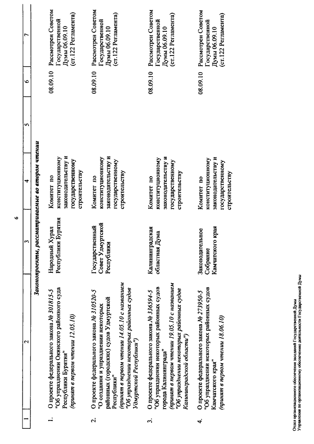 "О КАЛЕНДАРЕ РАССМОТРЕНИЯ ВОПРОСОВ ГОСУДАРСТВЕННОЙ ДУМОЙ С 7 ПО 24 СЕНТЯБРЯ 2010 ГОДА"