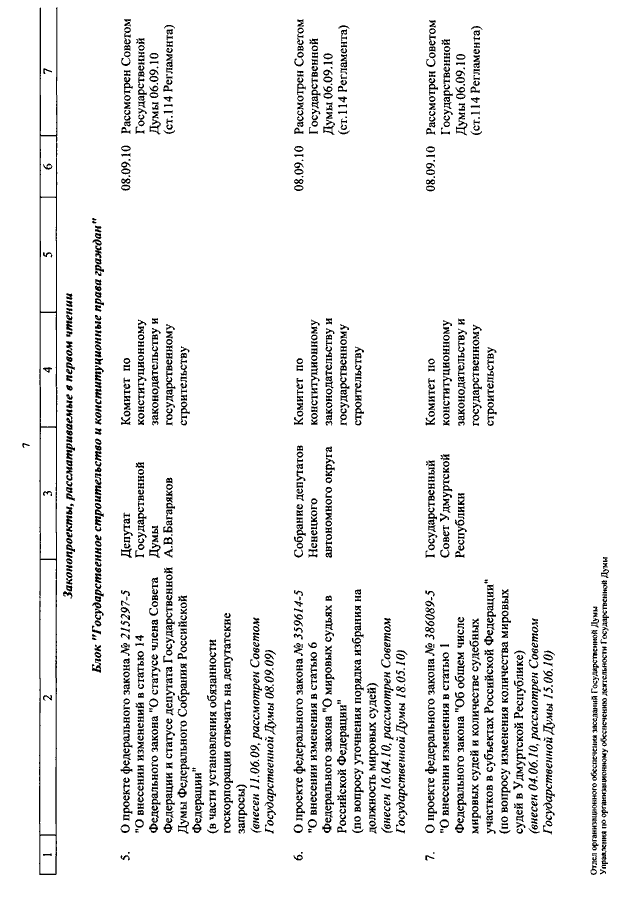 "О КАЛЕНДАРЕ РАССМОТРЕНИЯ ВОПРОСОВ ГОСУДАРСТВЕННОЙ ДУМОЙ С 7 ПО 24 СЕНТЯБРЯ 2010 ГОДА"